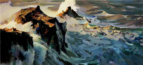 奧依塔克雪山下的家園 100cm×150cm 2017年