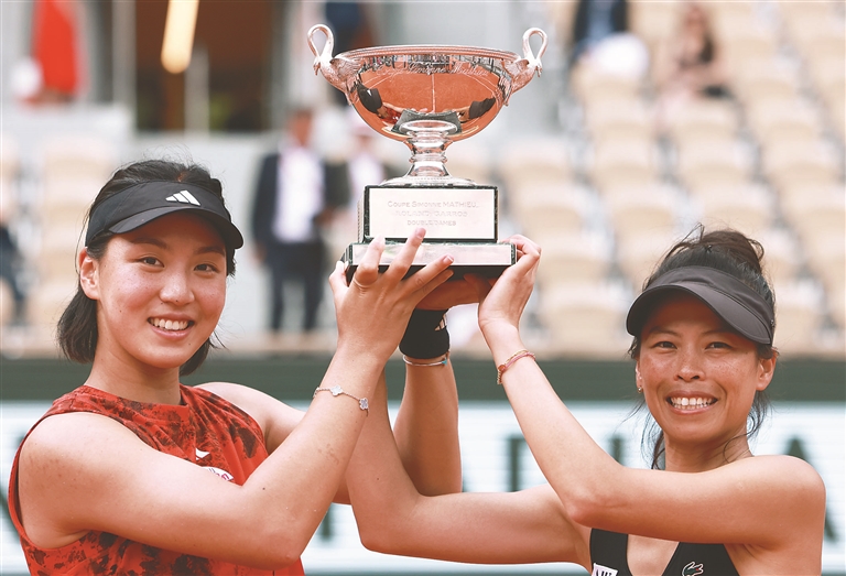 當(dāng)日,在2023法國(guó)網(wǎng)球公開賽女子雙打決賽中,王欣瑜(中國(guó))/謝淑薇(中國(guó)臺(tái)北)以2比1戰(zhàn)勝費(fèi)爾南德斯(加拿大)/湯森(美國(guó)),奪得冠軍。