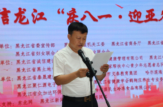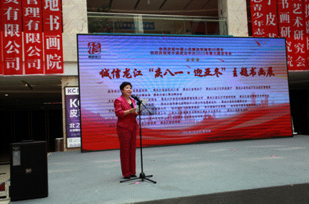 省直機關工委行業(yè)協會商會黨建工作部部長、全省性社會組織黨委專職副書記秦曉明致辭。他表示,相信通過這次活動的舉辦,將進一步激勵軍民同心,增強情感認同,深化同呼吸、共命運、心連心的軍民魚水情,營造擁軍優(yōu)屬、擁政愛民的濃厚社會氛圍。同時,以亞冬會為媒,以書畫展為平臺,充分展示文明尚禮、熱情自信的冰城風貌,領略龍江深厚的冰雪運動底蘊。