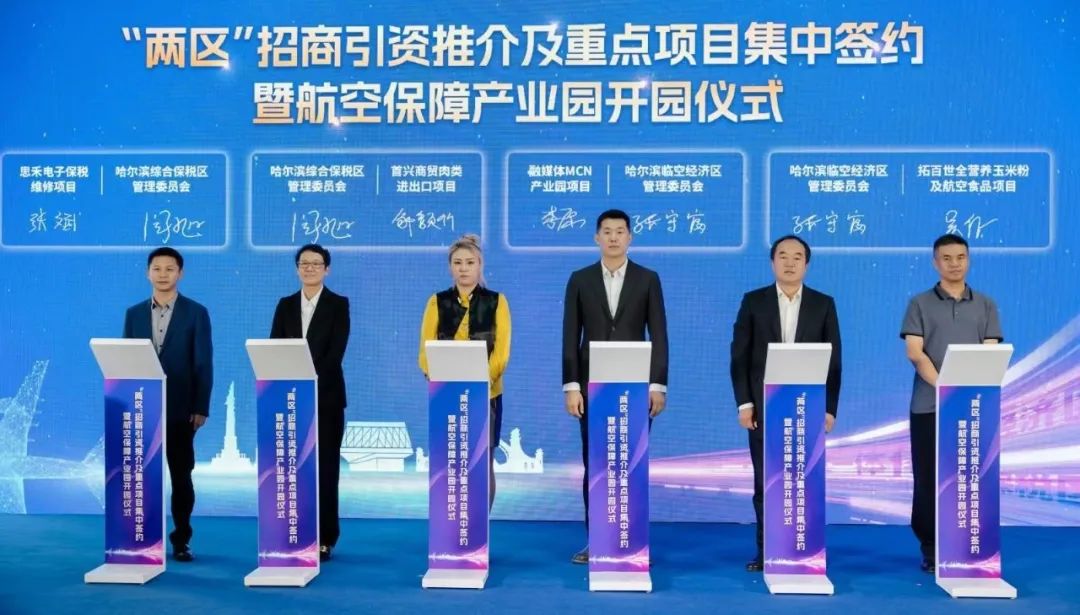 “兩區(qū)”管委會(huì)領(lǐng)導(dǎo)分別對(duì)哈爾濱綜合保稅區(qū)與哈爾濱臨空經(jīng)濟(jì)區(qū)重點(diǎn)園區(qū)、營(yíng)商環(huán)境、產(chǎn)業(yè)政策等特色優(yōu)勢(shì)作招商推介,誠(chéng)邀五湖四海的客商朋友來(lái)“兩區(qū)”投資興業(yè)、共商發(fā)展,吸引和促進(jìn)優(yōu)質(zhì)資源和高端要素匯聚“兩區(qū)”。哈爾濱臨空經(jīng)濟(jì)區(qū)航空保障產(chǎn)業(yè)園在全體來(lái)賓的見證下正式啟動(dòng),該園總建筑面積12萬(wàn)平方米,總投資5.6億元,重點(diǎn)發(fā)展航空總部經(jīng)濟(jì)、航空制造產(chǎn)業(yè)、航空物流產(chǎn)業(yè)、臨空制造產(chǎn)業(yè)以及航空服務(wù)、航空食品等產(chǎn)業(yè),致力打造為哈爾濱臨空經(jīng)濟(jì)區(qū)發(fā)展現(xiàn)代制造業(yè)的新名片,成為國(guó)內(nèi)知名的航空保障產(chǎn)業(yè)集群。