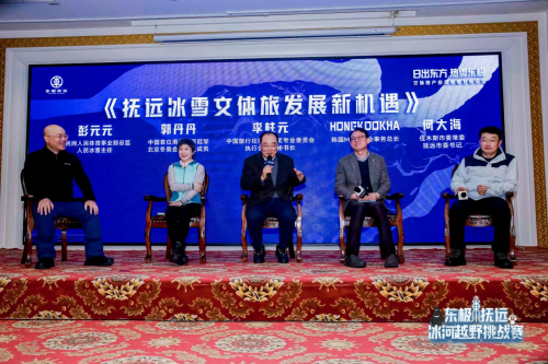 中國(guó)旅行社協(xié)會(huì)會(huì)獎(jiǎng)專業(yè)委員會(huì)執(zhí)行會(huì)長(zhǎng)、秘書長(zhǎng)李柱元,韓國(guó)MICE協(xié)會(huì)事務(wù)總長(zhǎng)何洪國(guó)等嘉賓對(duì)冰雪城市打造國(guó)際化會(huì)獎(jiǎng)目的地,分享交流了東極冰雪文體旅發(fā)展新機(jī)遇。