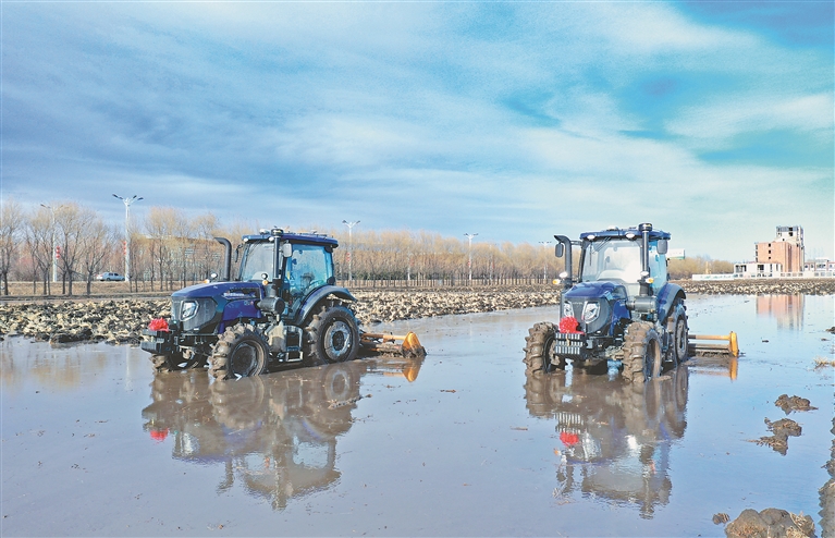 無人駕駛農機攪漿整地作業(yè)。徐宏宇攝