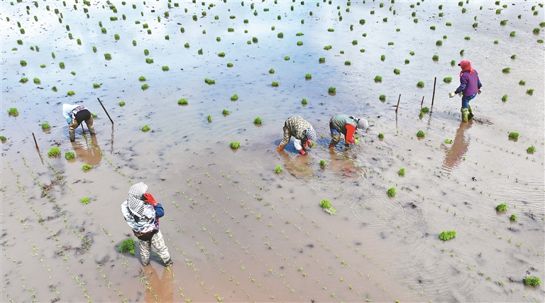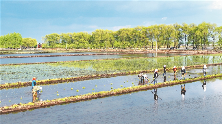 立夏過后,黑土地正式迎來水稻移栽好時(shí)節(jié),一排排秧苗整齊地挺立在田間,為稻田鋪上了“新綠”。在綏化市北林區(qū)國(guó)家級(jí)水田示范區(qū)國(guó)家級(jí)區(qū)域性良種繁育基地,這里正采用人工插秧的方式,繁育寒地香米品種。今年,北林區(qū)水稻預(yù)計(jì)種植面積108萬畝,寒地香米系列品種覆蓋95%以上。