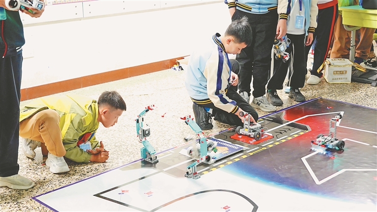 酷炫的火箭模型、憨態(tài)可掬的機(jī)器人舞蹈、趣味十足的物理小實(shí)驗(yàn)、充滿巧思的廢物再利用……活動(dòng)現(xiàn)場(chǎng),學(xué)生以創(chuàng)新的思維和獨(dú)特的視角,展示了形式多樣的發(fā)明成果,體現(xiàn)了青少年的科技創(chuàng)新才華。