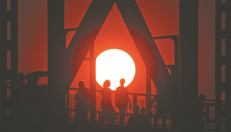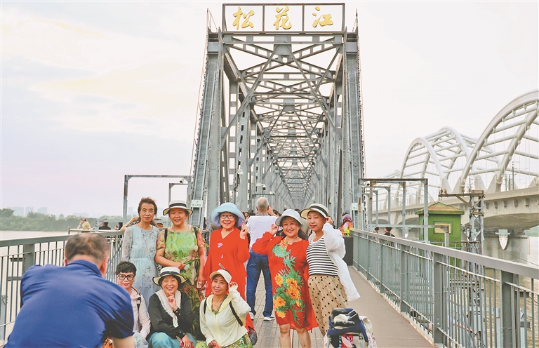雖然入伏了,但哈爾濱市百年老橋濱洲鐵路橋上江風(fēng)習(xí)習(xí)、清爽宜人。無論白天還是晚上,都有市民和來自天南海北的游客來此打卡拍照、觀賞美景、沐浴清涼。