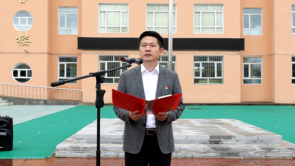 在國旗下,漠河市邊境檢查站代表陳澤和“全區(qū)十佳駐村干部”王成龍用自己生動的故事為在場的每位少先隊員們上了一堂生動的國防教育課,漠河市的少先隊員代表王涵在國旗下表達了對祖國的熱愛和對戍邊工作者們的敬佩。團省委副書記陳海萍在講話中鼓勵少先隊員要學習漠河戍邊工作者們的堅韌不拔和無私奉獻,要立足祖國最北方志存高遠、勤奮學習、錘煉品德、強健體魄,敢于創(chuàng)新、富于創(chuàng)意、樂于創(chuàng)造,要沿著“入隊、入團、入黨”的“人生三部曲”奮力前進,為推進中國式現代化、實現強國復興偉業(yè)貢獻青春力量。