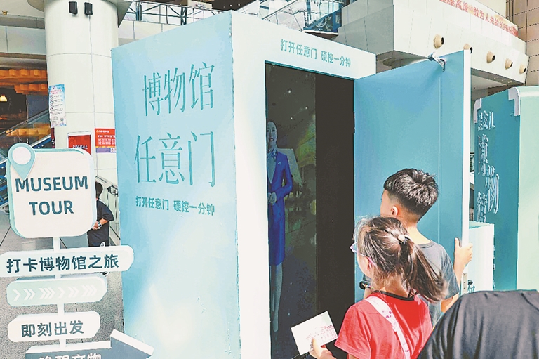 參觀觀眾跟隨著講解員的解說逐一打開九組文物旅行箱,仿佛走進了龍江珍寶庫,從史前的生物化石到龍江特色的生物標本;從小南山遺址出土玉器到唐渤海國文物;從于志學(xué)冰雪畫到朱曉東冰版畫,一件件珍貴的文物和藝術(shù)品,將黑龍江的歷史與文化濃縮、組合,讓觀眾充分領(lǐng)略了黑龍江的地大物博與黑土風情,閱讀與感受龍江文化。觀眾們打開充滿科技元素的“時空任意門”,通過視頻了解黑龍江省、市、縣博物館和展覽訊息,仿佛打破時空界限,身臨其境般體驗不同的博物館。