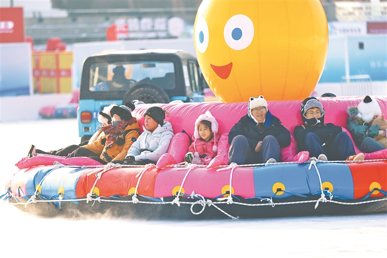記者站在堤壩望向松花江面看到,江面被有序劃分為多片區(qū)域,每片區(qū)域都是一個(gè)歡樂場(chǎng),游客可以體驗(yàn)“瘋狂八爪魚”、大滑梯、龐巴迪賽車、滑冰,乘坐馬車、冰雪龍舟游覽園區(qū),還可以走進(jìn)“馴鹿部落”體驗(yàn)喂食馴鹿的樂趣。同時(shí),熱飲屋、文創(chuàng)店、寄存處、餐飲店、防寒用品攤位等相關(guān)配套服務(wù)一應(yīng)俱全。