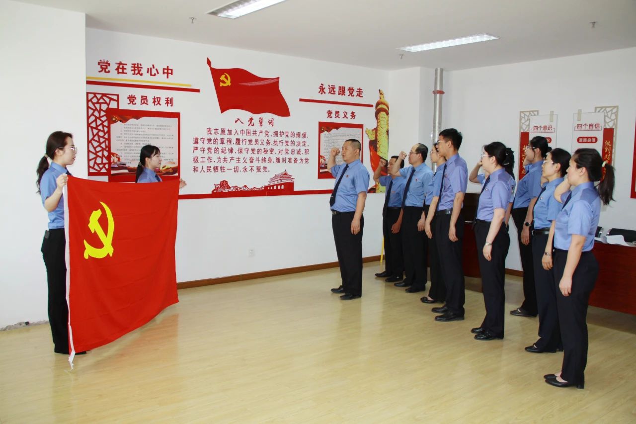 重溫入黨誓詞,堅(jiān)定理想信念。全體黨員干警整齊列隊(duì),面向鮮紅的黨旗,莊嚴(yán)地舉起右手,重溫入黨誓詞?!拔抑驹讣尤胫袊伯a(chǎn)黨,擁護(hù)黨的綱領(lǐng),遵守黨的章程……”誓言鏗鏘有力,每一位黨員干警都以飽滿的熱情、昂揚(yáng)的斗志,表達(dá)著對黨的無限忠誠和為黨的事業(yè)奮斗終身的堅(jiān)定決心。