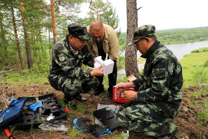 阿木爾林業(yè)局工作人員在興安林場野生赤芍種植基地安裝太陽能監(jiān)控系統(tǒng)(王力 攝)