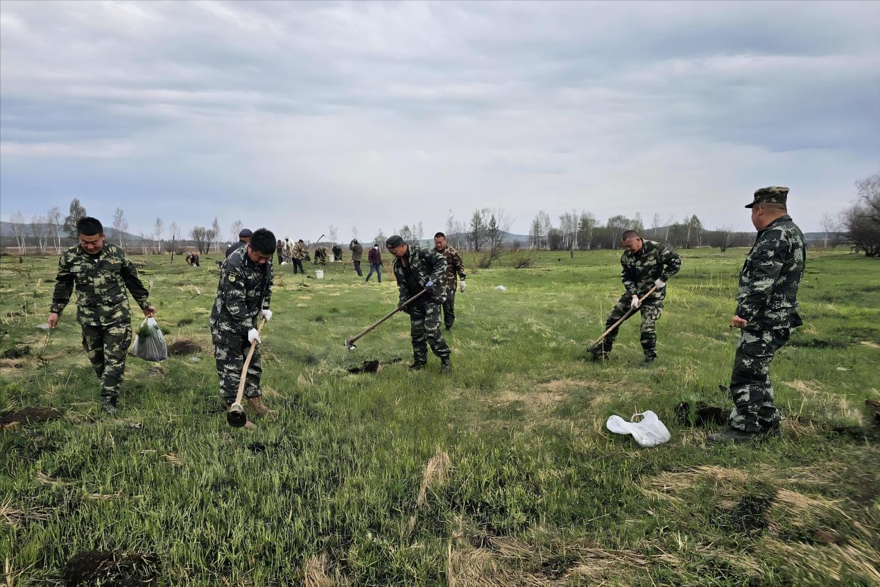韓家園林業(yè)局植樹活動現(xiàn)場,職工在有序栽種樹苗(于建 攝)