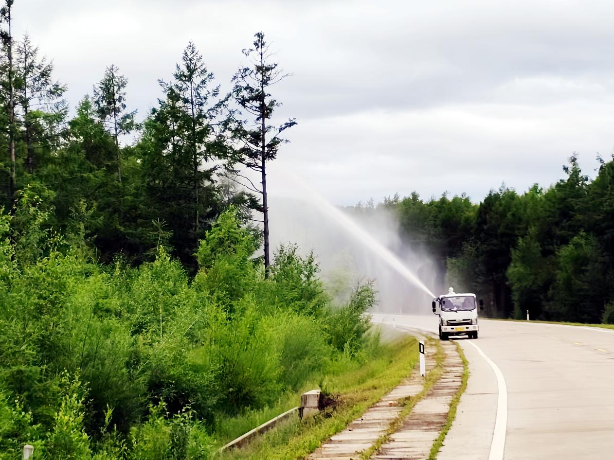 噴藥車在道路兩側(cè)進(jìn)行噴霧作業(yè)(王微 攝)