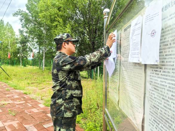 林業(yè)局工作人員在張貼《2025年林下資源采集封山封線的通知》 (柏松 攝)