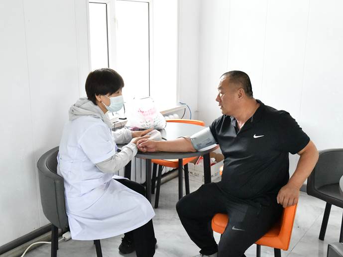 醫(yī)療團(tuán)隊(duì)在為林場職工測量血壓(張銘煊 攝)