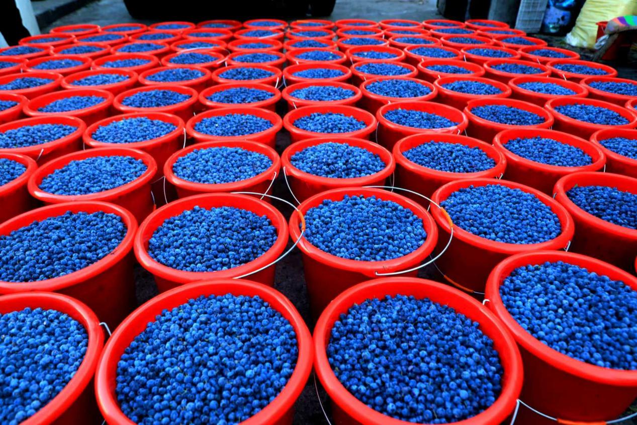 誘人的阿木爾林業(yè)局手采的野生藍莓果(王力 攝)