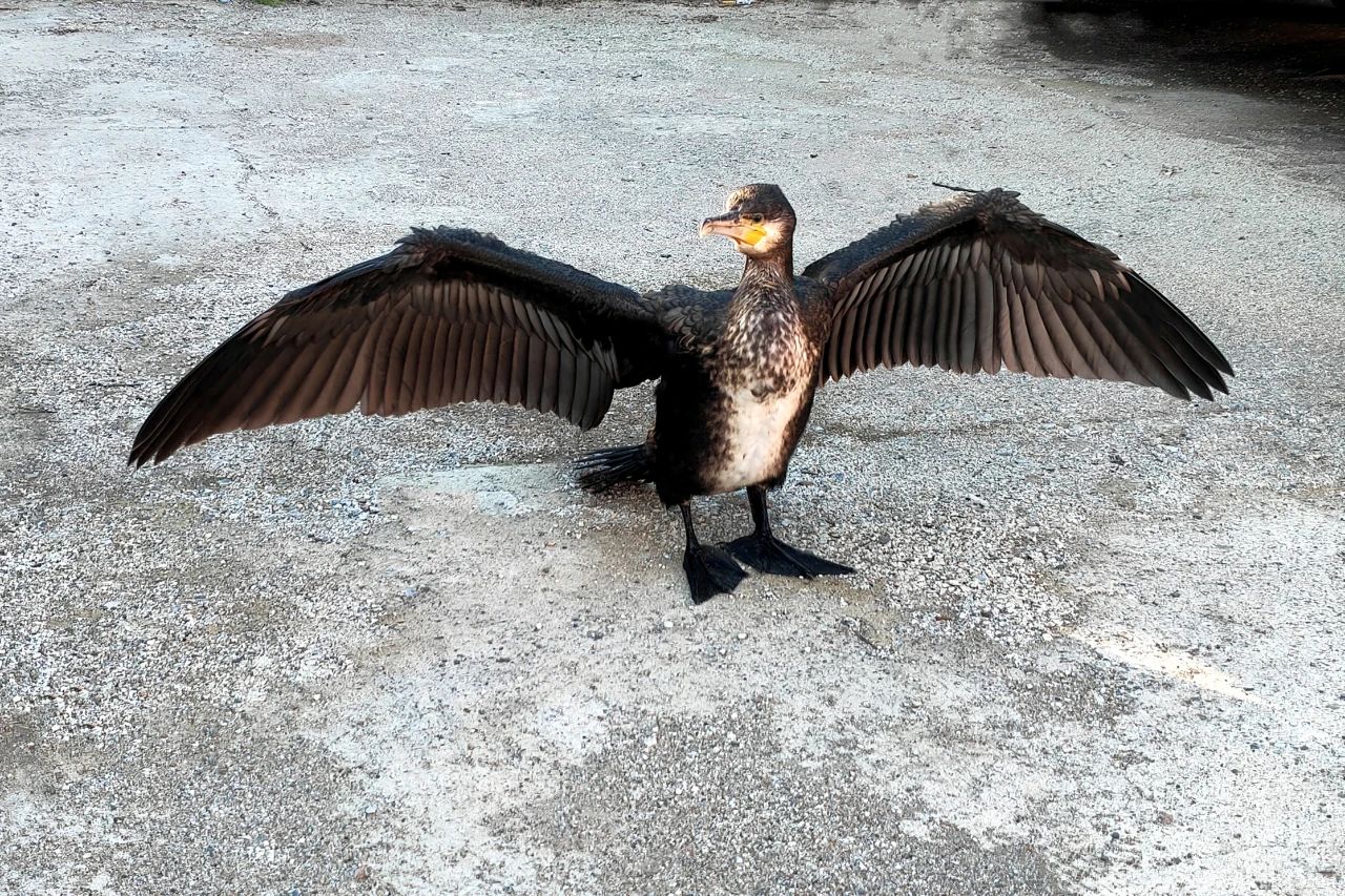 這只引發(fā)關注的“大鳥”,通體漆黑,身形壯碩,獨特的彎鉤狀長嘴格外醒目,但卻絲毫不見尋常野鳥的靈動。憑借多年的巡護經(jīng)驗,工作人員判斷這極可能是珍稀鳥類,當即小心翼翼地將其帶回林場安置,并第一時間聯(lián)系野生動物保護專業(yè)人士。經(jīng)專業(yè)人士鑒定,這只“大鳥”是國家“三有”保護動物鸕鶿,它體表無明顯傷痕,但羽毛蓬松雜亂,反應遲鈍,明顯處于體力透支狀態(tài),結合近期當?shù)貧鉁伢E降、降雨頻繁的天氣特點,專業(yè)人士推測,這只鸕鶿很可能因覓食困難、能量消耗過大而陷入虛弱。