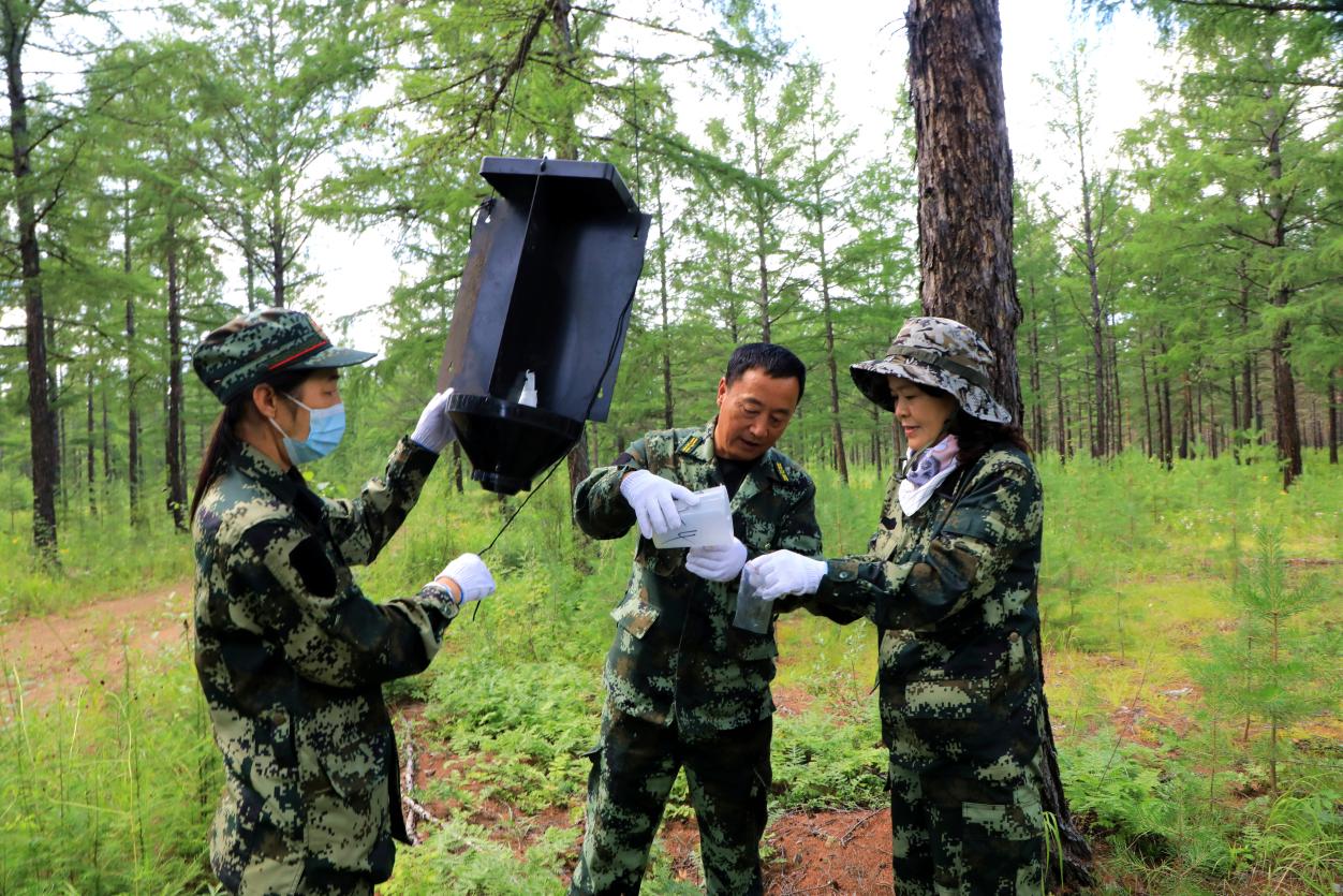 阿木爾林業(yè)局防治站工作人員利用誘捕器,調查以梢斑螟為主要對象的鉆蛀類害蟲(王力 攝)