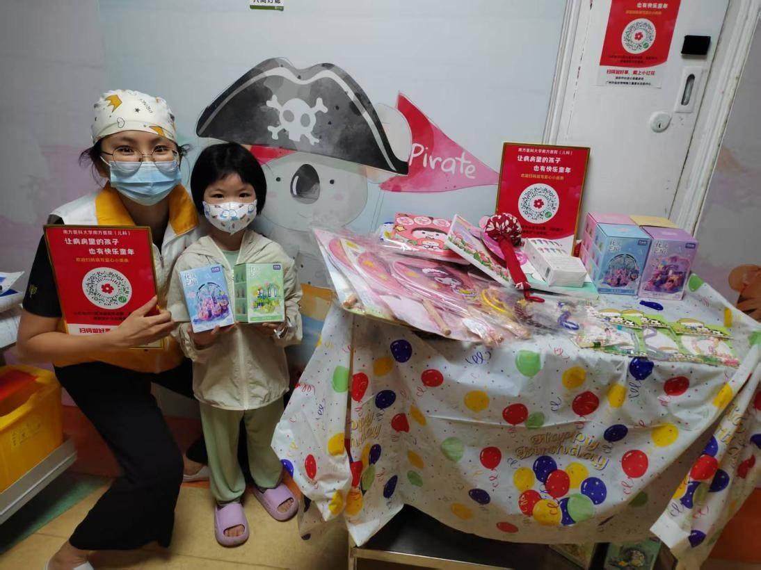圖片說明:在南方醫(yī)科大學南方醫(yī)院,志愿者和小朋友們一起開展愛心義賣