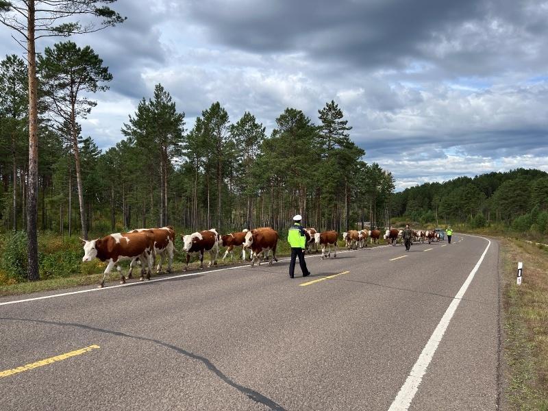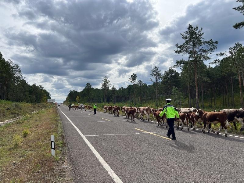 每次牲畜轉(zhuǎn)場大多由一名養(yǎng)殖戶照料,因牛群數(shù)量多、分散廣,養(yǎng)殖戶根本顧不過來,部分牛時不時竄向路中央,過往車輛只能小心翼翼避讓,交通安全隱患重重。針對轉(zhuǎn)場路線長、牲畜數(shù)量多、車輛與畜群混行等實際情況,呼瑪縣公安局交通管理大隊提前謀劃、精心部署。轉(zhuǎn)場當(dāng)日,天還未亮,民輔警們就已在集合點等候。他們與養(yǎng)殖戶一起檢查牛群狀態(tài)、整理物資,隨后便踏上了轉(zhuǎn)場之路。一路上,民輔警們分散在牛群周圍,有的在前方引導(dǎo),及時疏導(dǎo)交通,指揮過往車輛減速慢行,確保車輛與畜群有序通行;有的在后方壓陣,防止牛群掉隊;有的在兩側(cè)警戒,用溫和的呼喊聲和手勢指揮牛群前進方向。