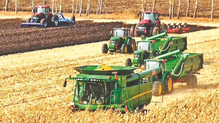 據(jù)統(tǒng)計(jì),北林區(qū)130萬畝耕地實(shí)現(xiàn)全程或半程托管服務(wù),讓小農(nóng)戶搭上現(xiàn)代農(nóng)業(yè)的“快車”。通過墾地合作,與省農(nóng)科院簽訂戰(zhàn)略合作協(xié)議,讓科研成果扎根田間,為糧食生產(chǎn)注入源源不斷的新活力,合作地塊玉米、大豆產(chǎn)量比其他地塊增產(chǎn)10%以上。同時,北林區(qū)堅(jiān)持增產(chǎn)與減損并重,加大智能農(nóng)機(jī)配套應(yīng)用,精收細(xì)收,節(jié)糧降損。三大作物機(jī)械化收獲率達(dá)100%,通過減損相當(dāng)于增產(chǎn)糧食0.15億斤。
